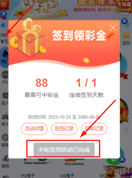 活动详情:新用户注册绑卡完善个人资料,点击签到随机送5-88,满100元提。亲测领取成功