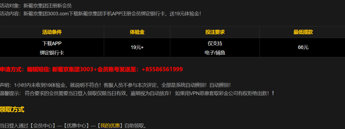 活动详情:新用户注册下载app,绑定手机号银行卡,按照优惠活动操作,申请19彩金