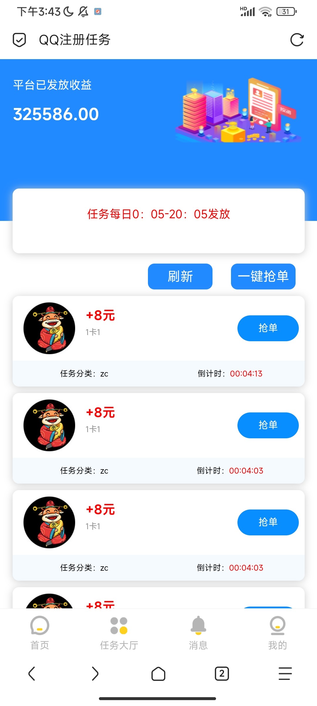 QQ注册任务8米一个没米的老哥可以搞搞